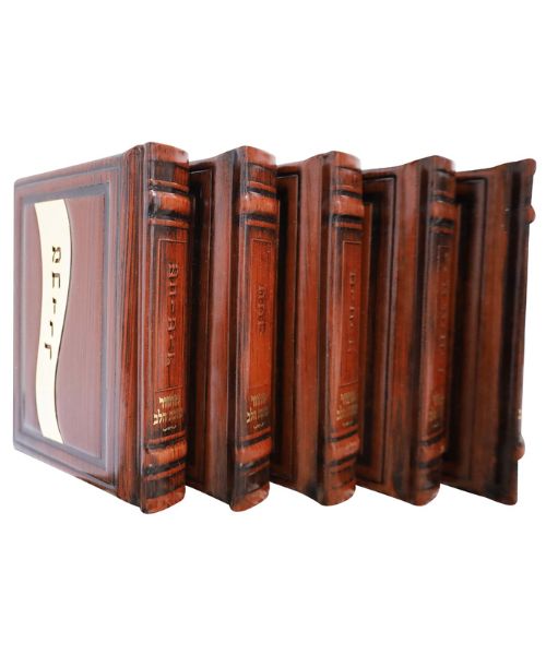 * 5 כרכים, נייר כרומו, עור אמיתי עבודת יד, עם טס זהב